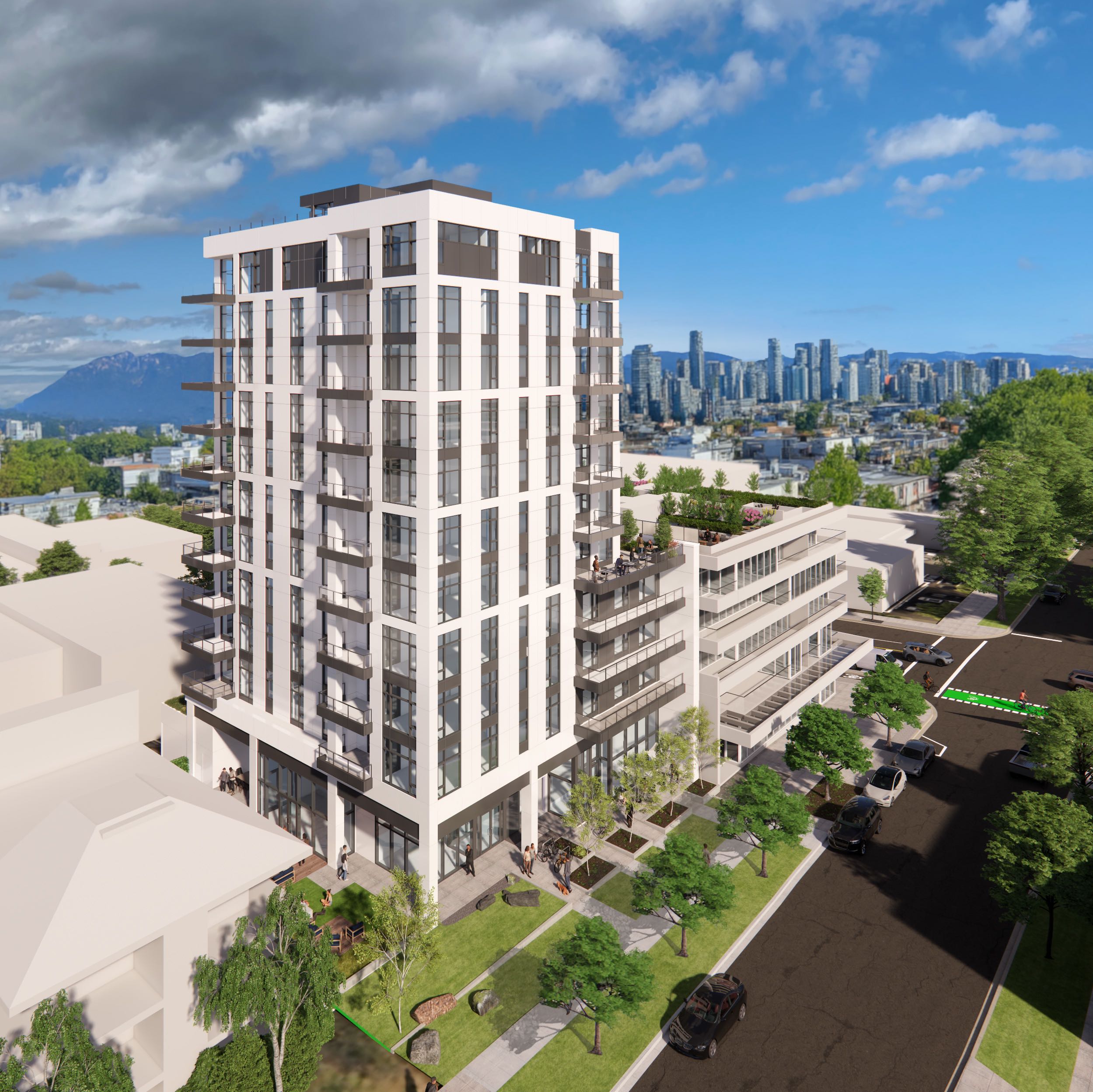 The City of Vancouver has received an application to rezone the subject site from R3-3/C3-A (Residential and Commercial) District to CD-1 (Comprehensive Development) District. The proposal is to allow for the development of a 12-storey mixed-use strata building and includes: