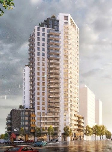 The City of Vancouver has received an application to rezone the subject site from C-2 (Commercial) District to CD-1 (Comprehensive Development) District. The proposal is to allow for the development of a 24-storey mixed-use residential building with a five-storey podium and includes: