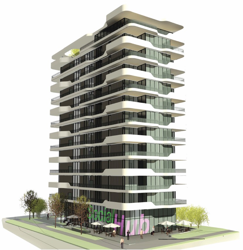 The City of Vancouver has received an application to rezone the subject site from R1-1 (Residential) District to CD-1 (Comprehensive Development) District. The proposal is to allow for the development of a 12-storey mixed-use building with a rooftop amenity space, and includes: