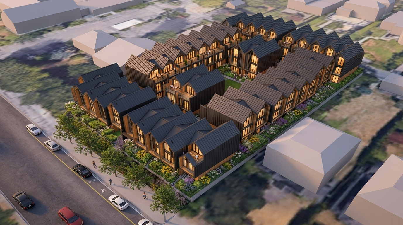 The City of Vancouver has received an application to rezone the subject site from R1-1 (Residential Inclusive) District to CD-1 (Comprehensive Development) District. The proposal is to allow for the development of eight three-storeybuildings and includes: