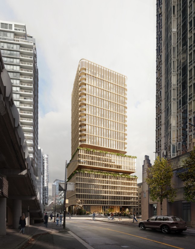 The City of Vancouver has received an application to rezone the subject site from DD (Downtown) District to CD-1 (Comprehensive Development) District. The proposal is to allow for the development of a 29-storey mixed-use development building with an eight-storey podium and includes:
