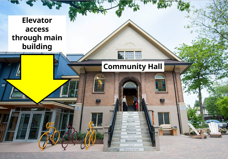 Accessibility Information: The Community Hall is on Level 2. For elevator access, enter through the main building's lobby.